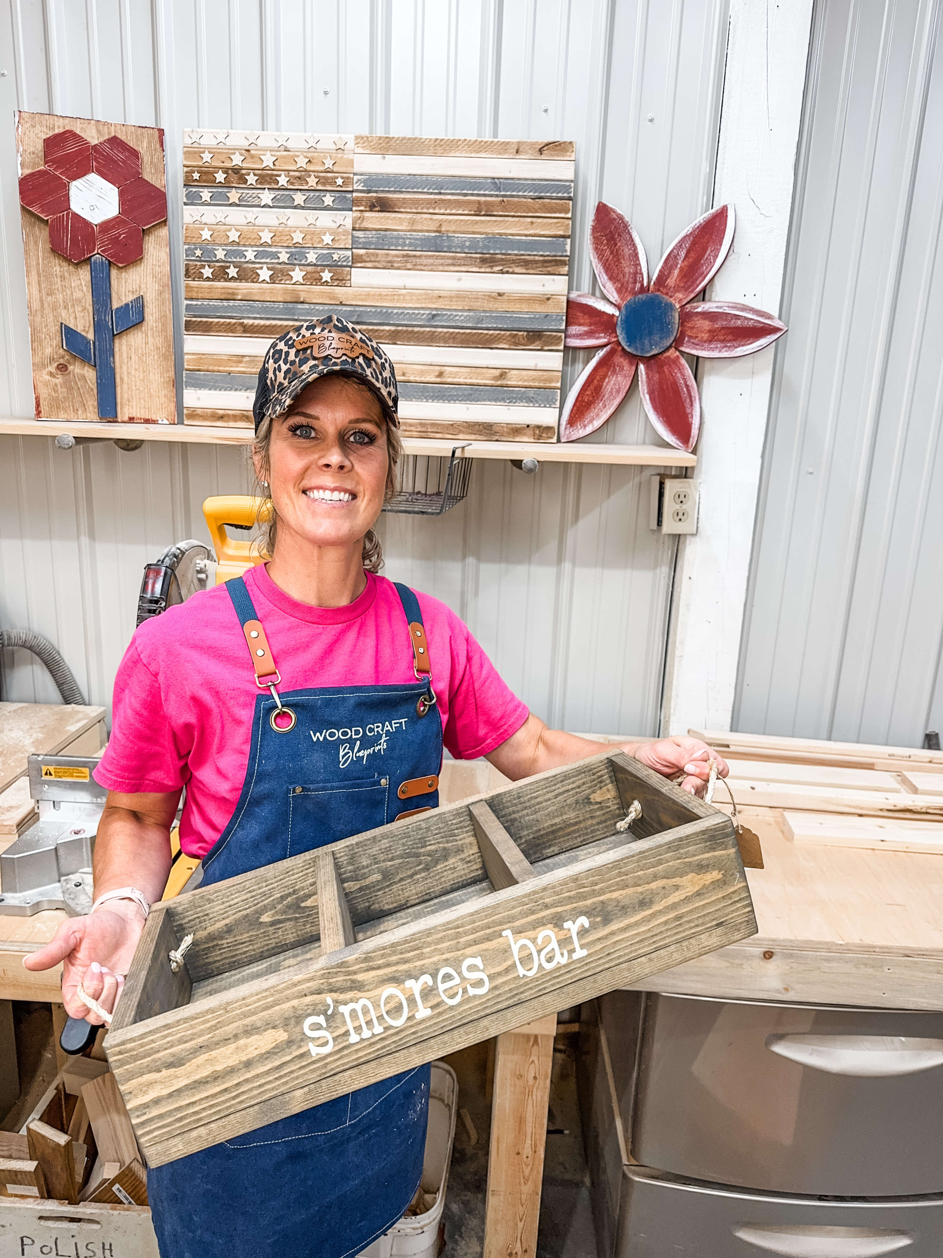 Plan for about 30 for the s’mores bar and 60 minutes for the flag, plus drying time for any finish you choose. Most beginners can complete both in one weekend.