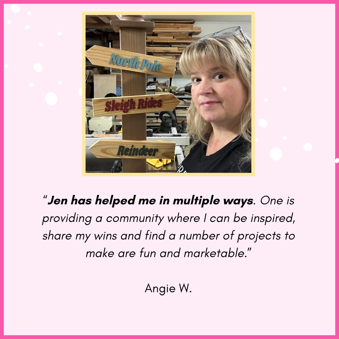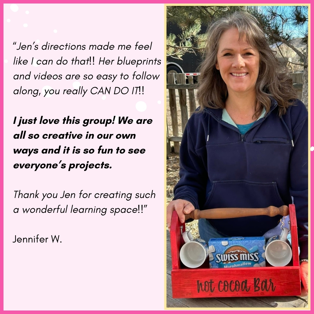 Hi there! I'm Jen, and I'm on a mission to empower beginner woodworkers like you to create stunning, best-selling décor—no advanced skills or industrial workshop required.