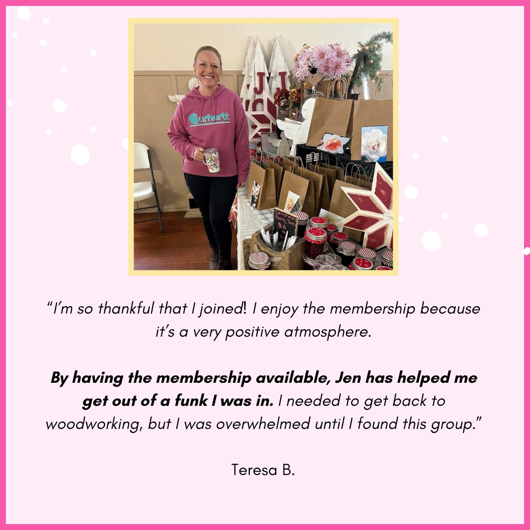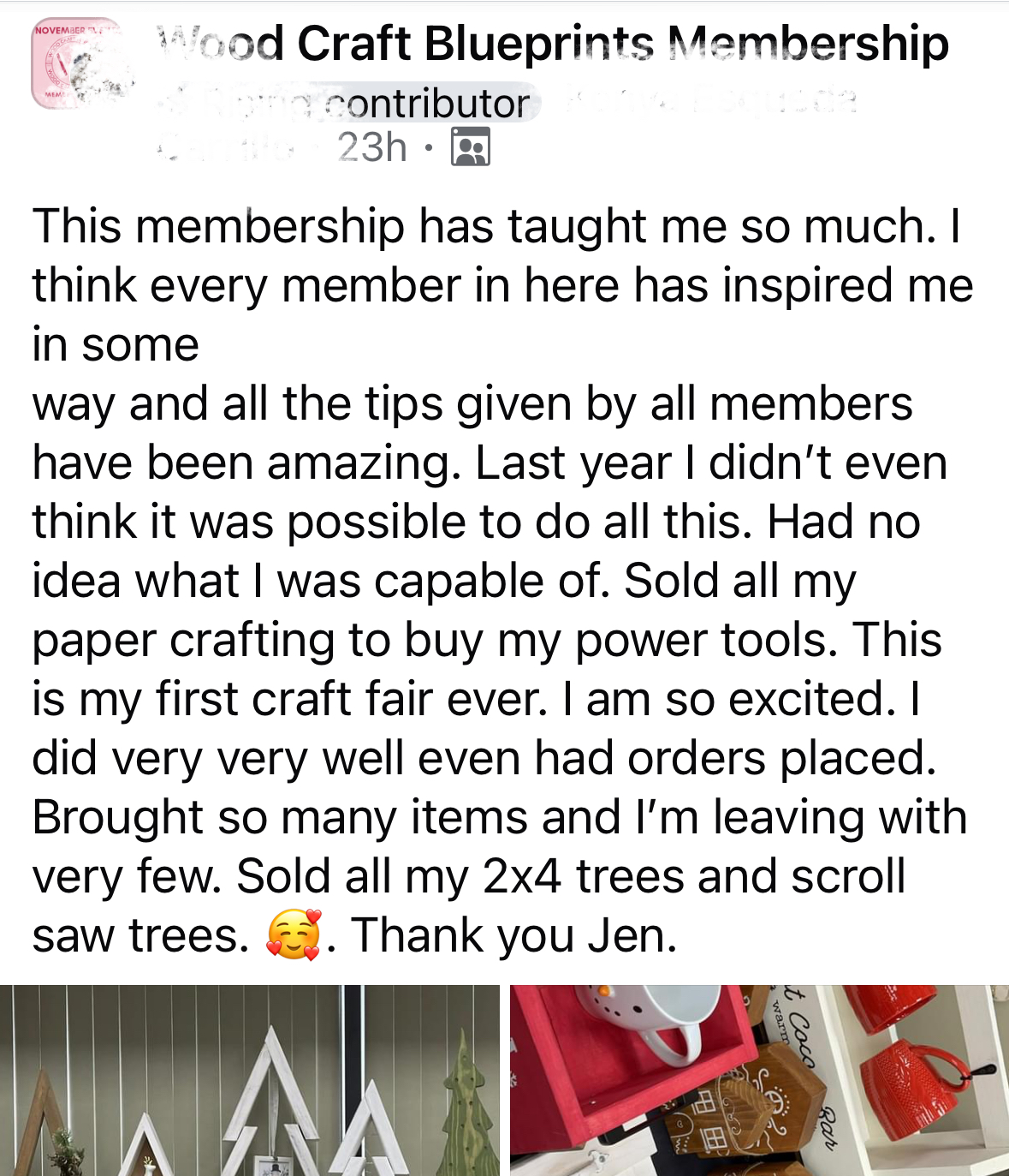 That's why I started this membership in 2021. I wanted to share my hard-earned knowledge with aspiring woodworkers and give them the tools to turn their hobby into a rewarding income stream.